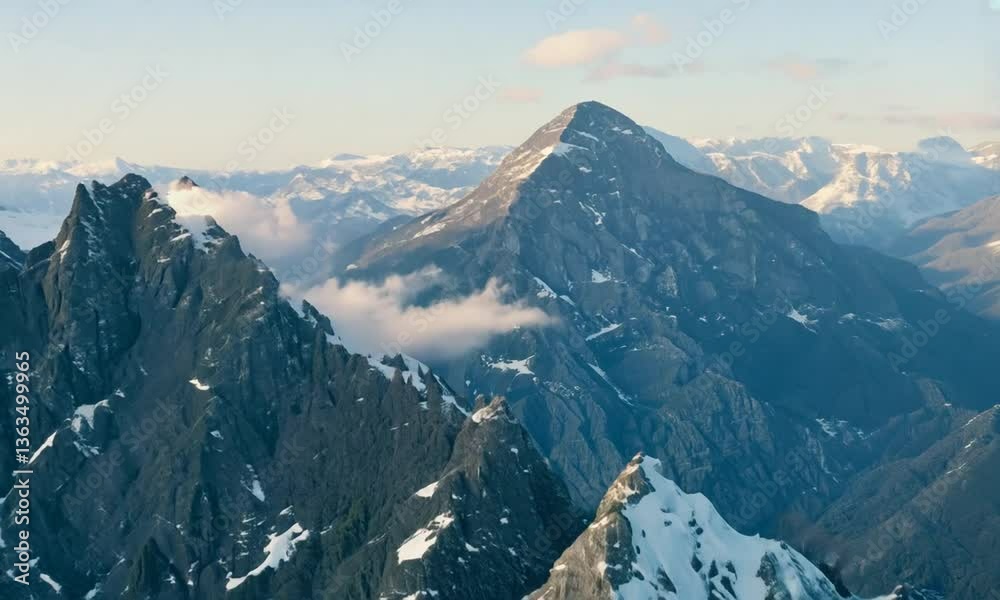 Cinematic Drone Aerial View of Snow Mountain Peak Nature Countryside