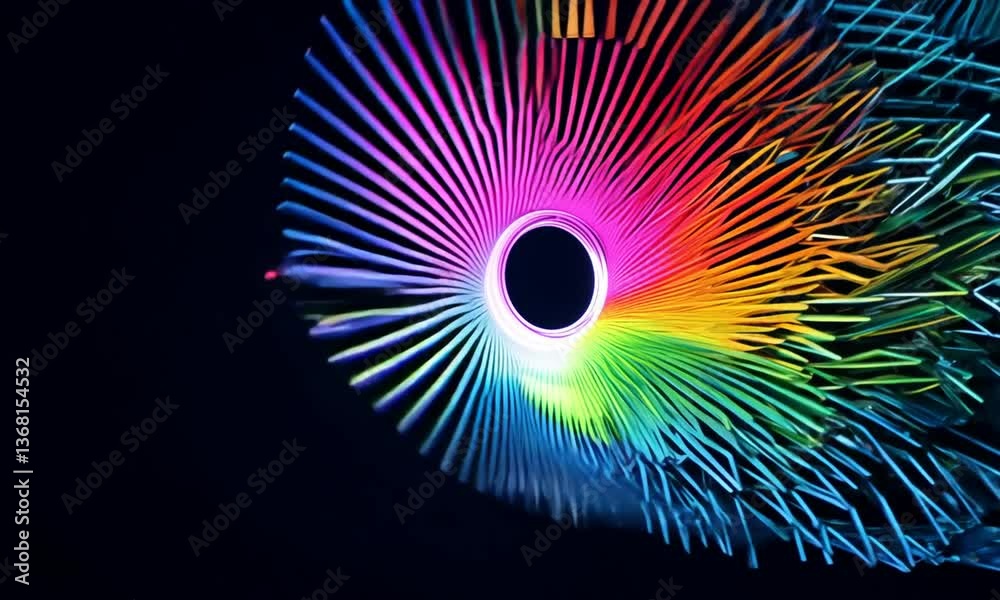 Abstract spinning colorful blades on a black background. Design. Rotating details of mechanism.