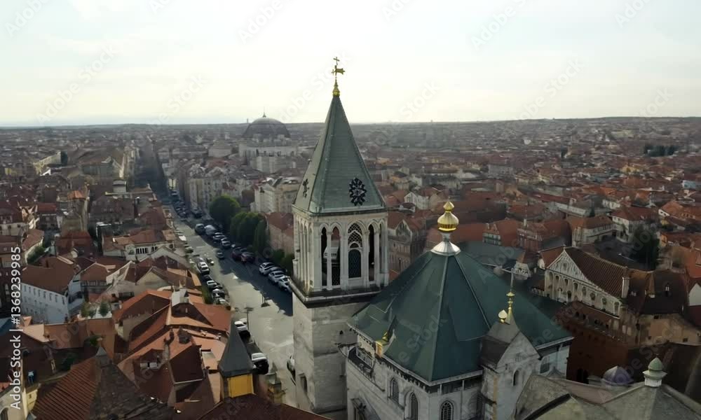 Aerial raw footage of Tbilisi city panorama with buildings and street in background