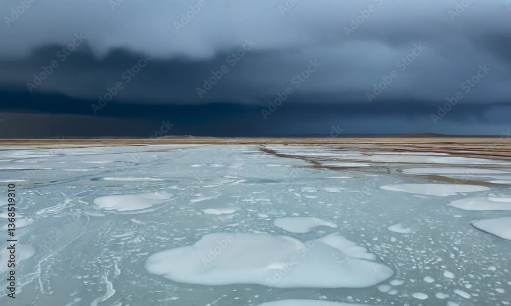 Bonneville Salt Flats landscape with rain storm clouds in distance