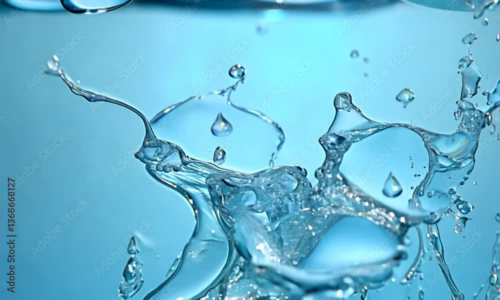 Splashes of water soar up and fall. On a blue background. Filmed is slow motion 1000 fps.