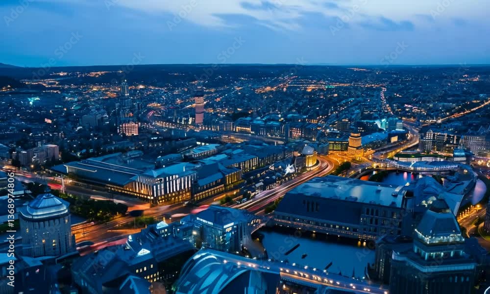 Time Lapse Aerial Footage of British City During Night