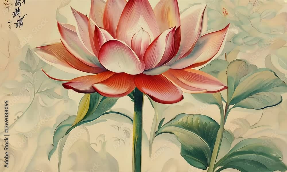 Chinese retro painting style lotus illustration.