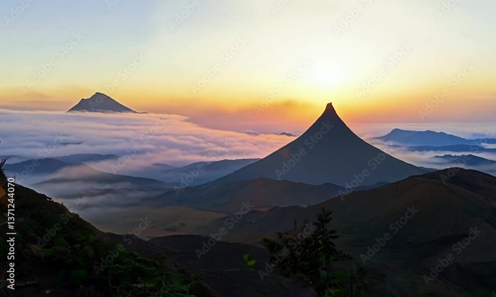 Beautiful landscape of Mount Bromo volcano during sunrise, East Java, Indonesia