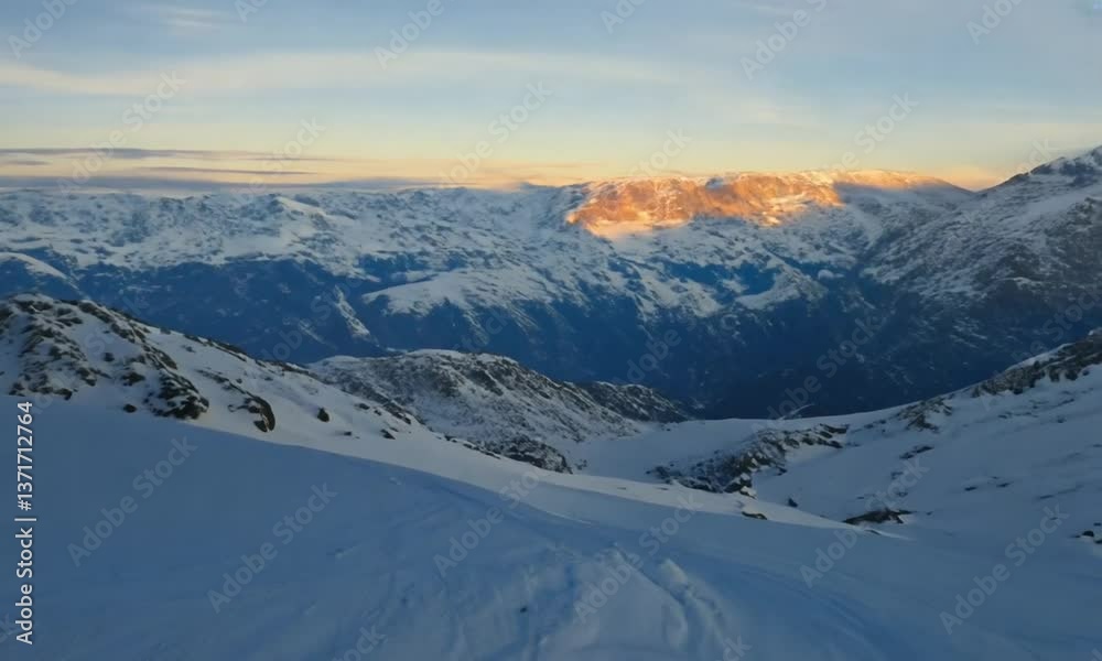 Incredible Snowy Valley at Dorotea Rio Turbio Argentina. Peaking Snow Background.