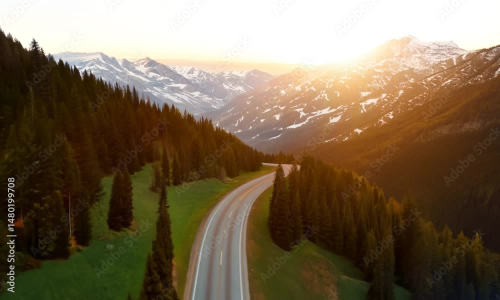winding mountain road over alpine meadows at the edge of the forest