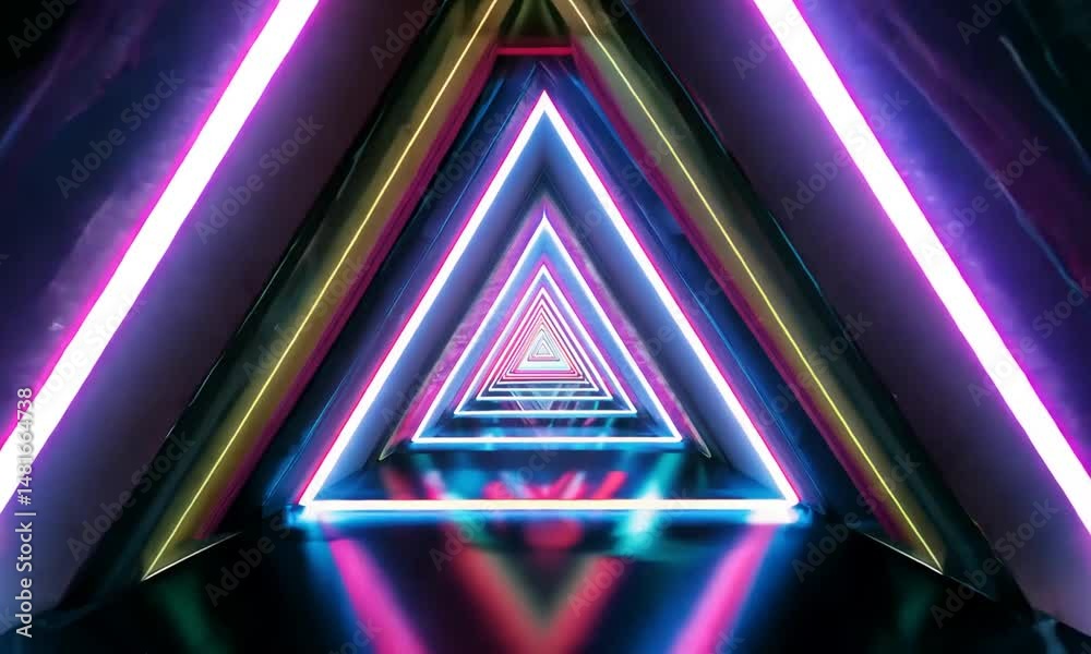 Abstract triangle tunnel neon glow