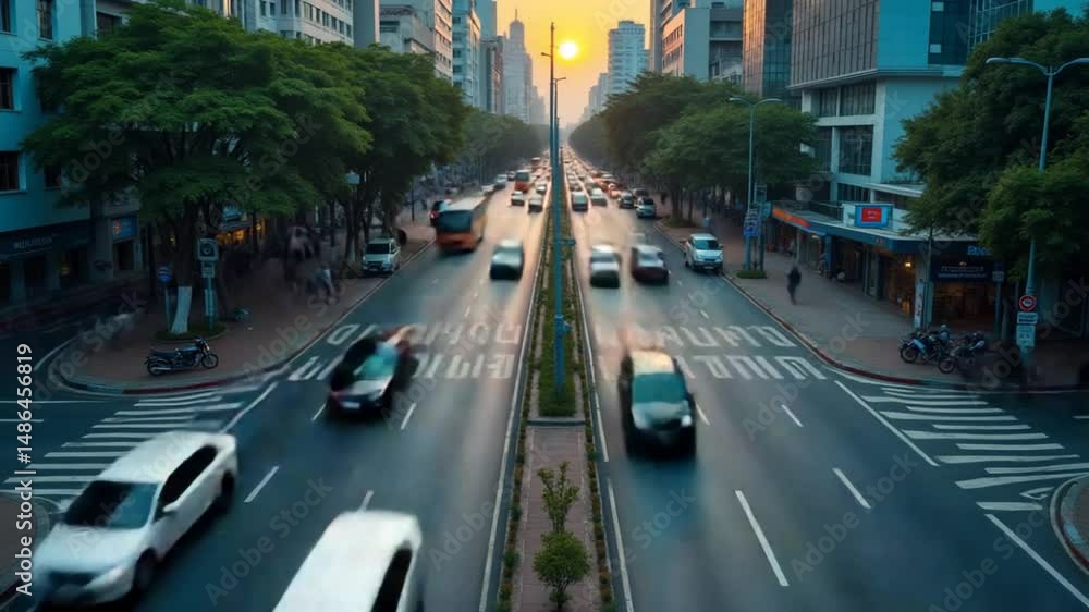 Aerial timelapse of morning traffic at intersection in Ho Chi Minh City, Vietnam