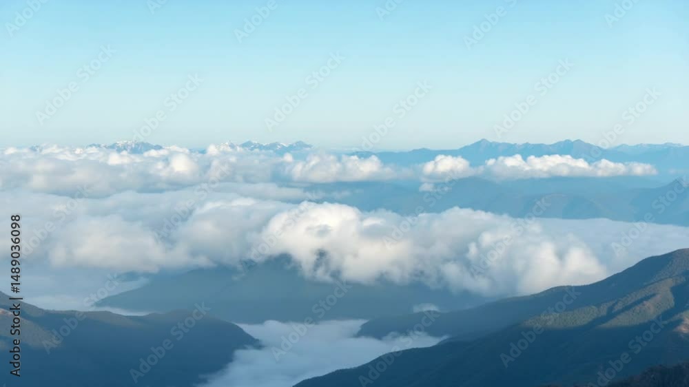 Aerial view of beautiful mountain landscape. Clouds hover over the mountains