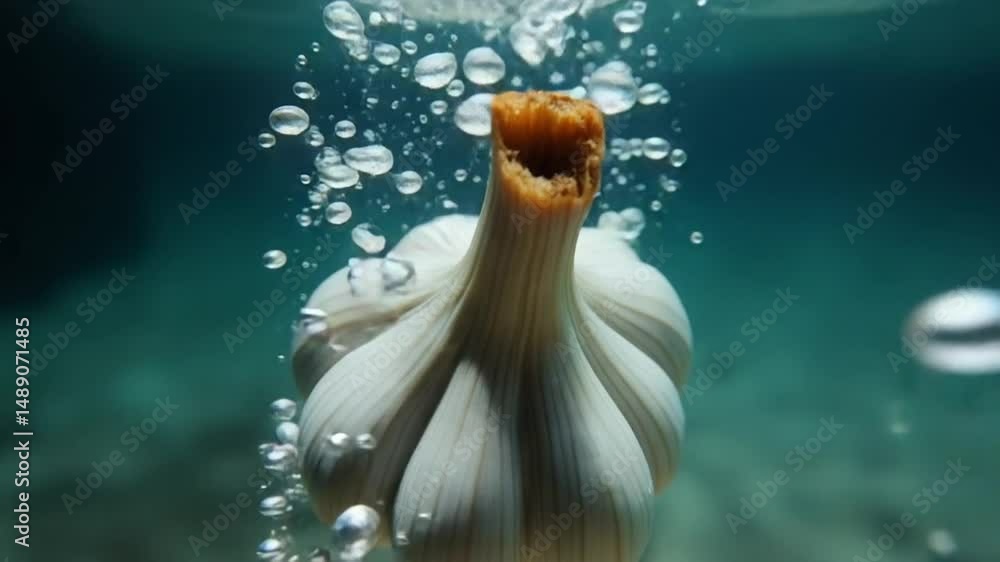 Super slow motion garlic falls under water. High quality FullHD footage