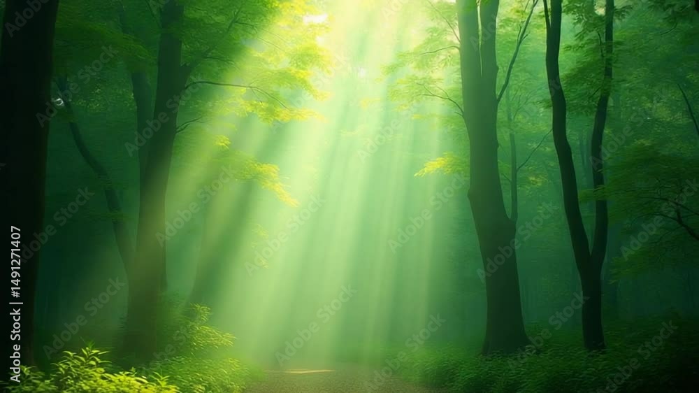 Green forest with ray of light