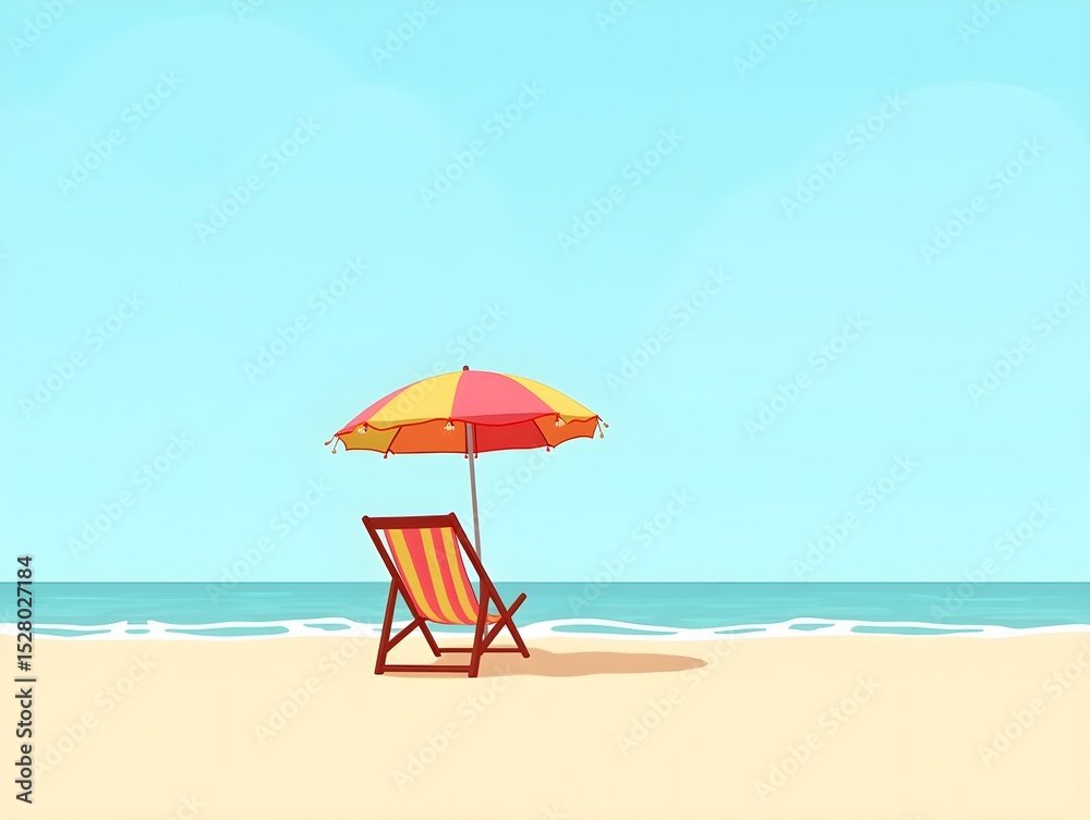 Beach chair and umbrella on the beach illustration