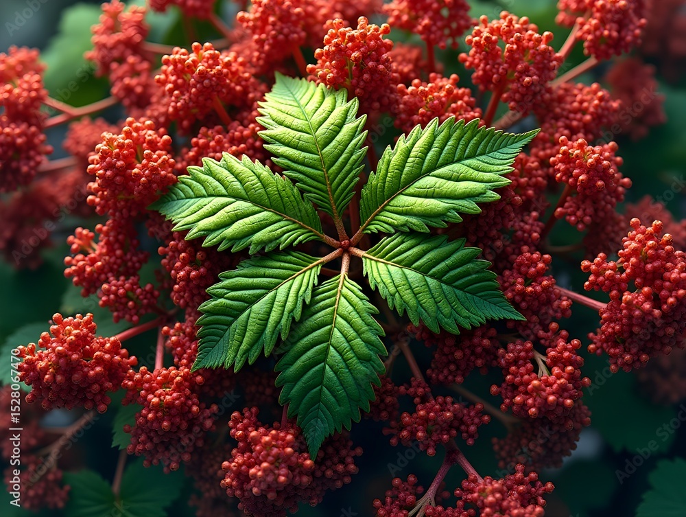 Top view photorealistic Mountain Ash, plant set on a vibrant background