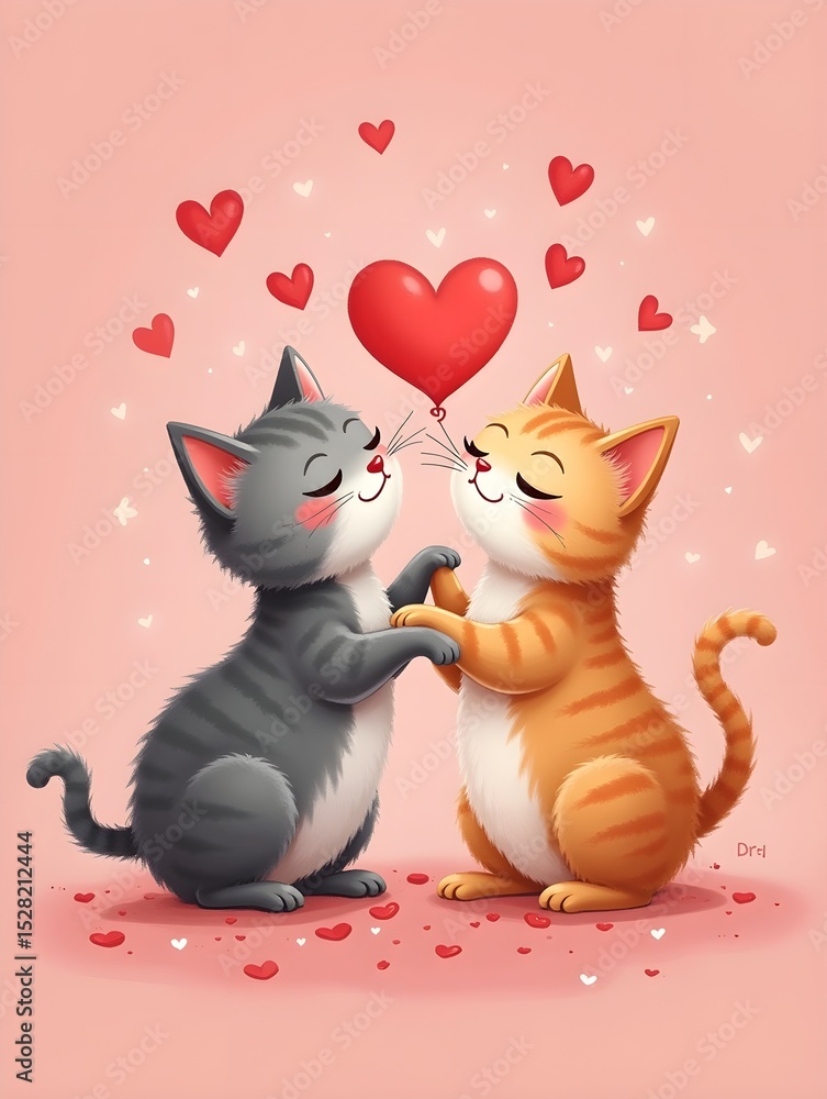Adorable Valentine Cats with Hearts and Romantic Vibes