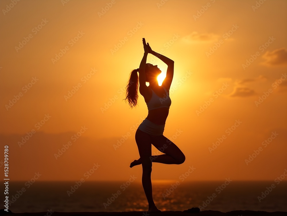 Dawns grace Silhouette of an elegant woman practicing morning yoga AI Generated