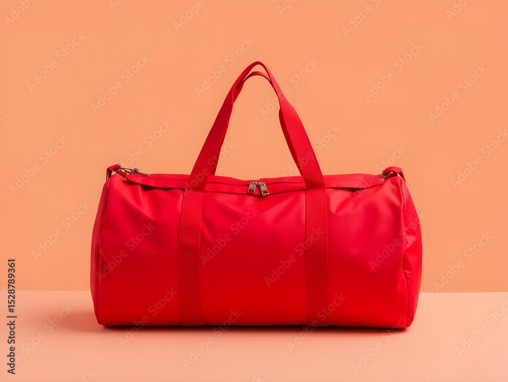 A spacious red duffel bag sits elegantly on a bright backdrop, perfect for travel or gym outings