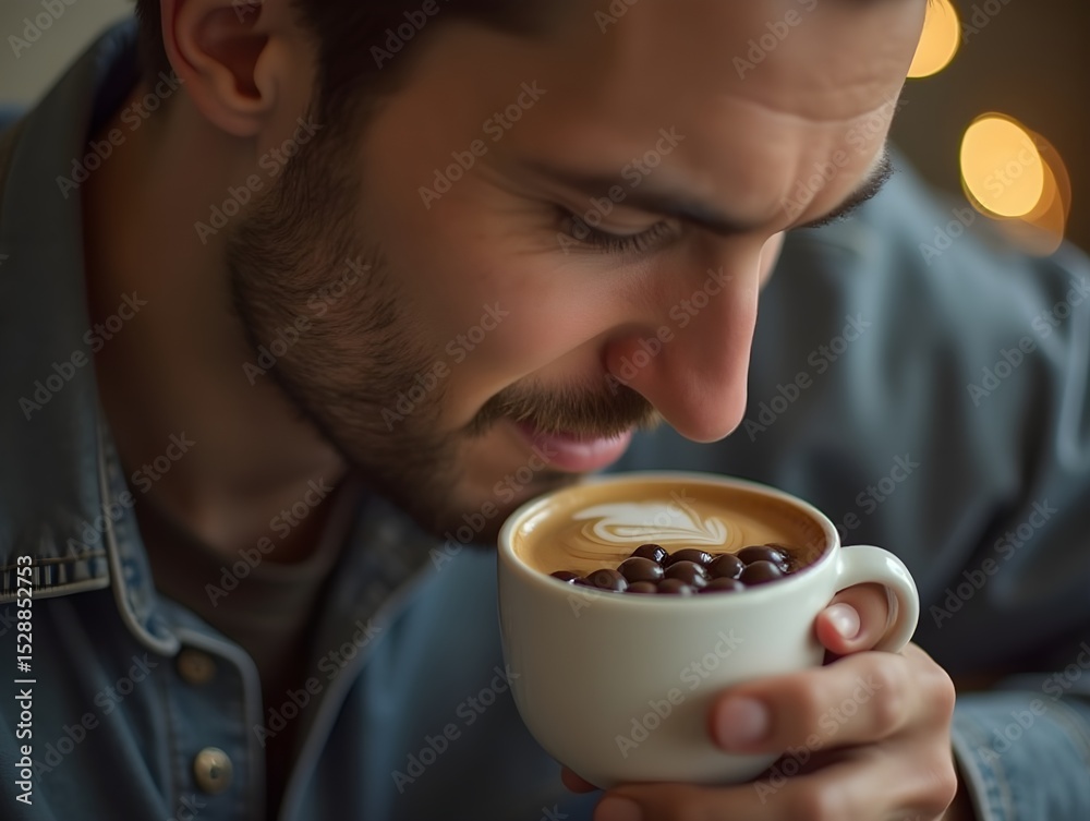 Man enjoying a cup of coffee, symbolizing warmth, comfort, and relaxation