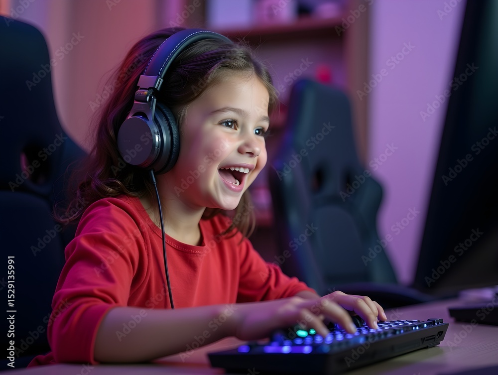 Adorable Gamer Girl Enthusiastically Playing Games on Computer