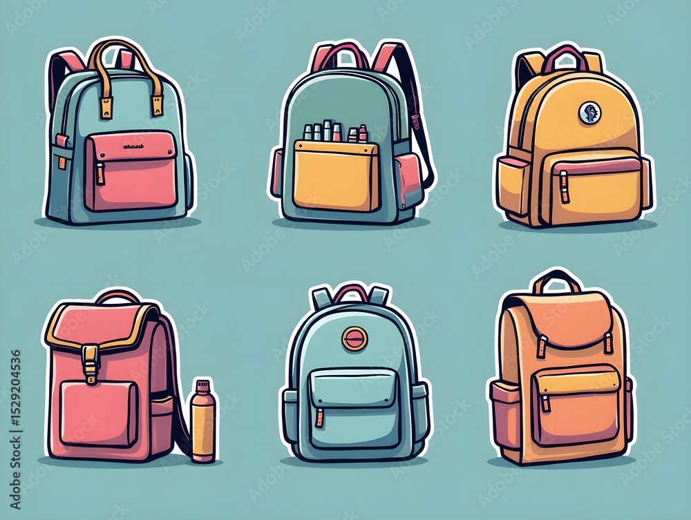 School bag logo set with outline illustration ideal for education brand and student supply themes