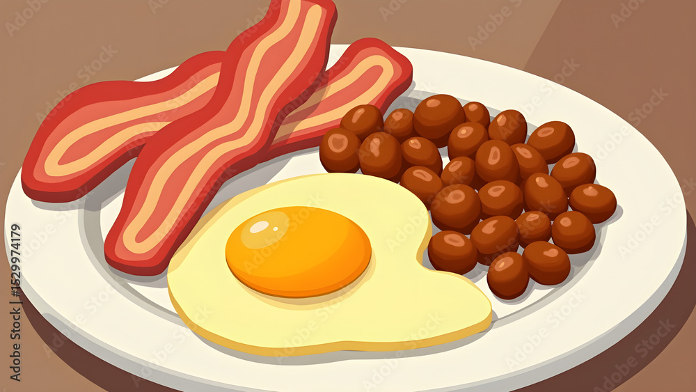 A plate of food with eggs bacon and beans