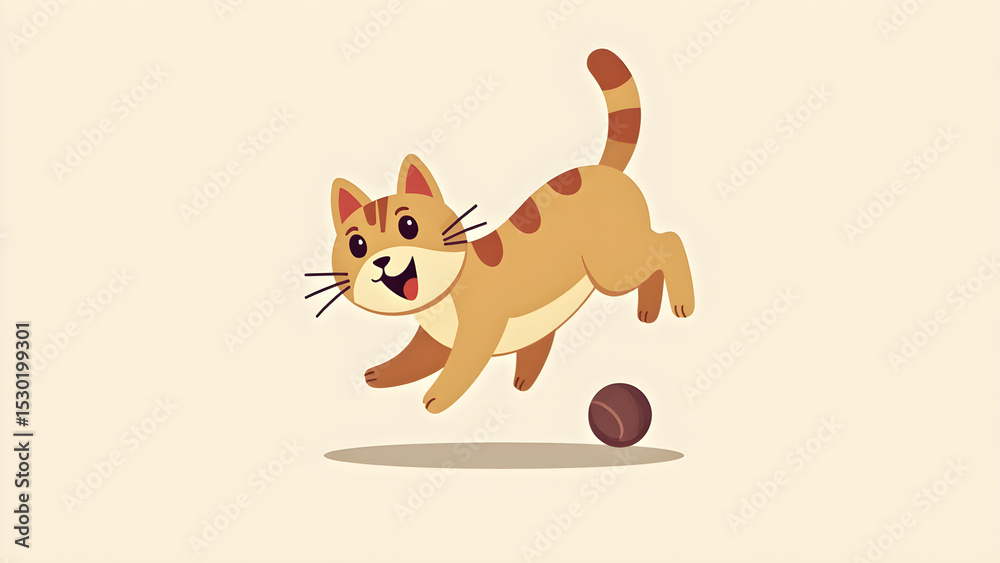 Minimalist Logo Illustration of a Playful and Cheerful Cat Playing with a Ball