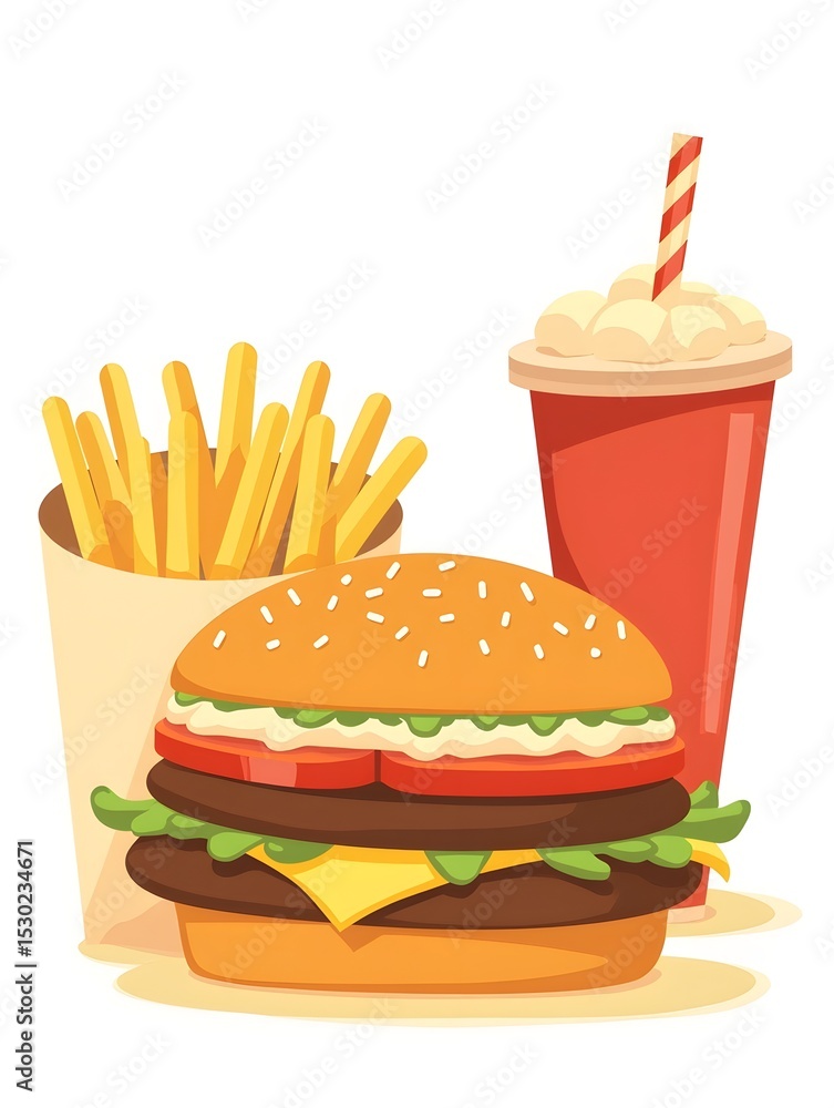 Delicious Fast Food Combo with Burger, Fries, and Drink Illustration