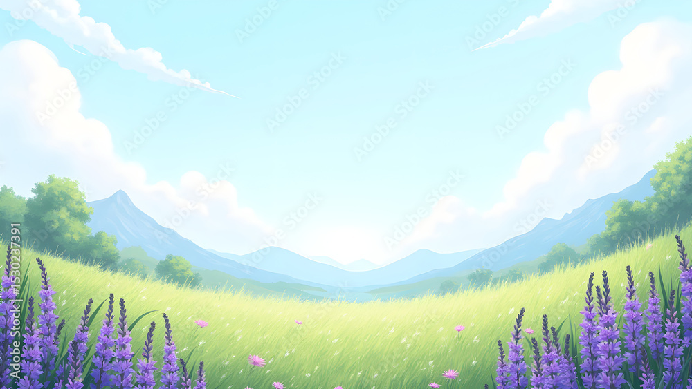 A beautiful landscape with purple flowers and grass