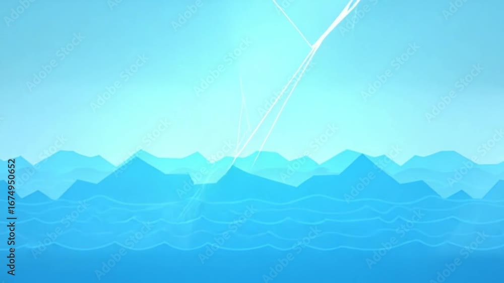 Low Polygon Animated Background Loop with Wireframe sea blue