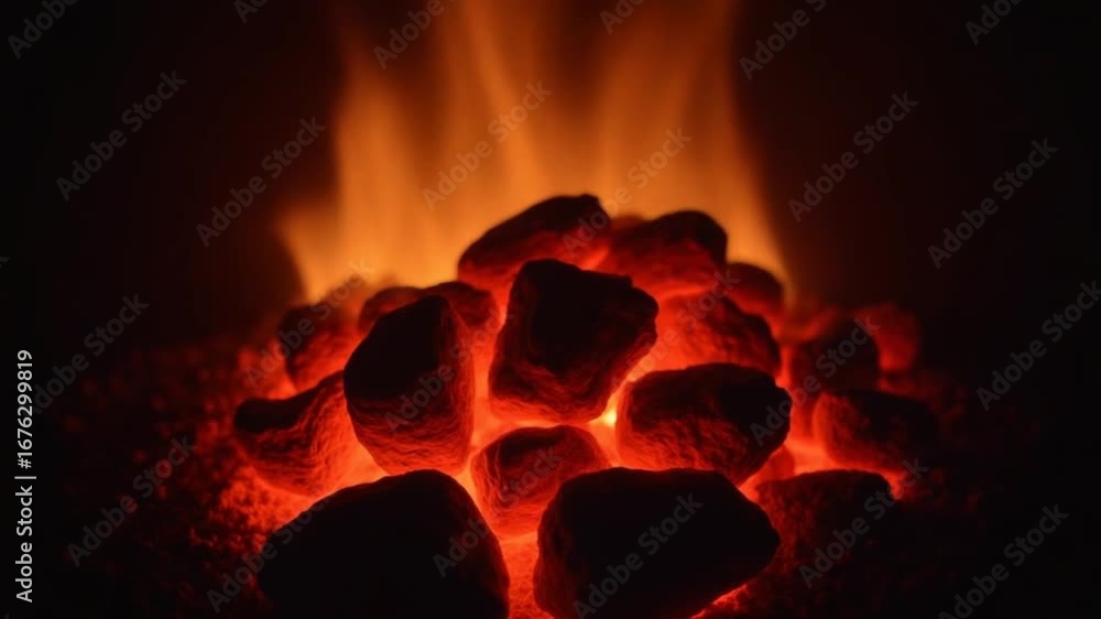 The Hot Coals of a Fire. Burning Coals in the Stove. Red Heat