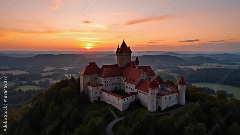 Aerial view of the Castle in Bedzin at sunset, Upper Silesia, Poland