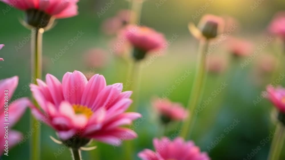 Many beautiful pink flowers. Summer day in an incredibly beautiful flowering garden.