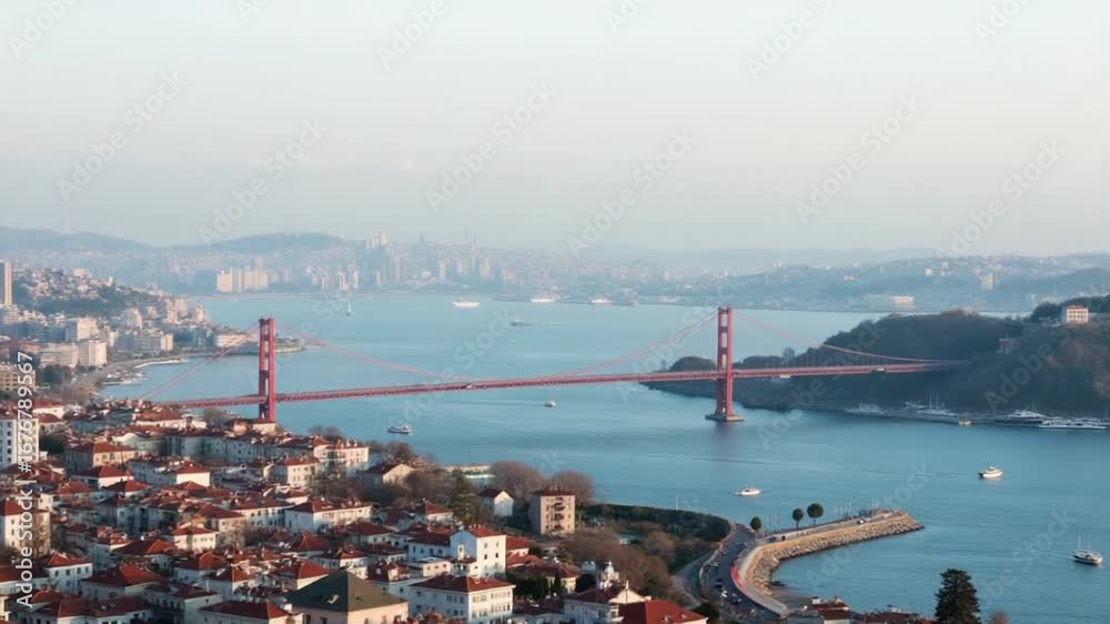 Drone view of the city center, the Golden Bridge and the Golden Horn Bay