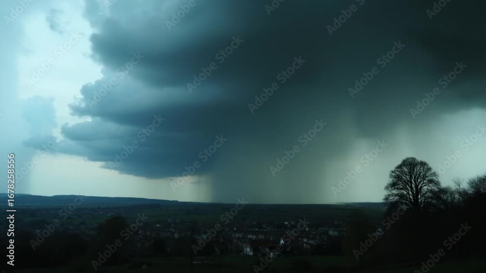 Fast Moving Rain Clouds over British Town, Time Lapse Footage