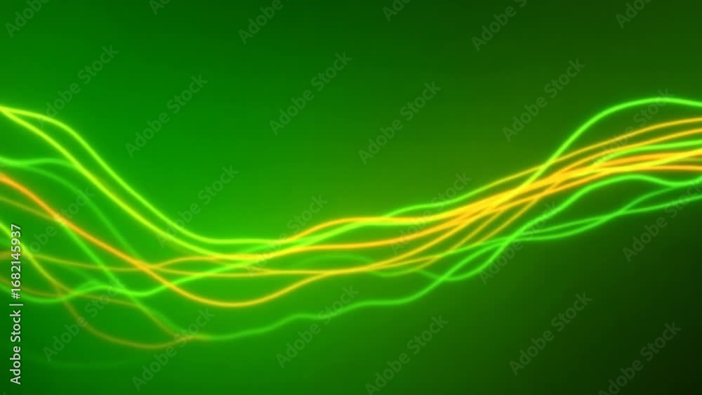 Green and orange lines.Motion. Animation in which bright lines move in 3D format