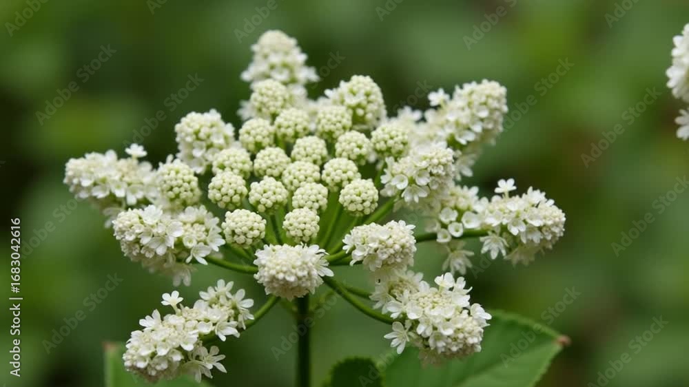 Spiraea - inflorescences with small white flowers of an ornamental shrub in the garden.