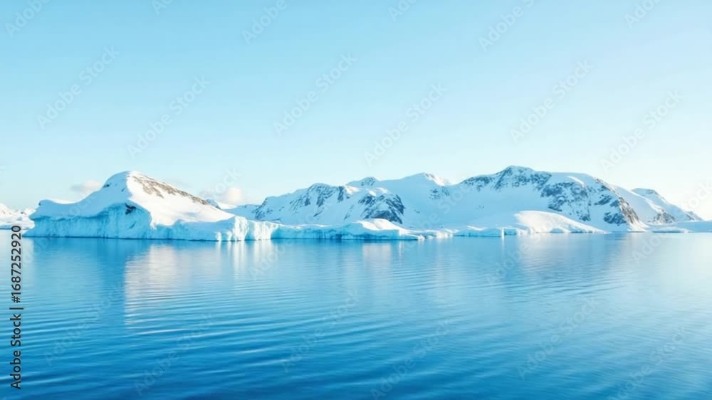 snow capped mountains against the blue ocean in Antarctica