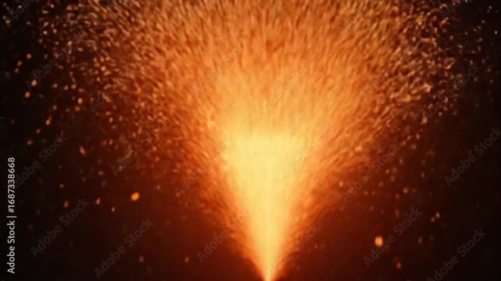 Sparks flying from the fire. Divergent cone of particles. Abstract animation.3