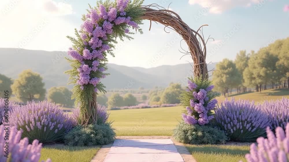 AI generated Wedding decor in the countryside, lavender theme decoration