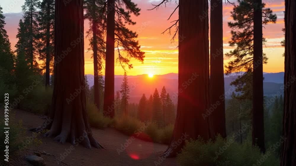 Sunset view in the forest in Sequoia National park
