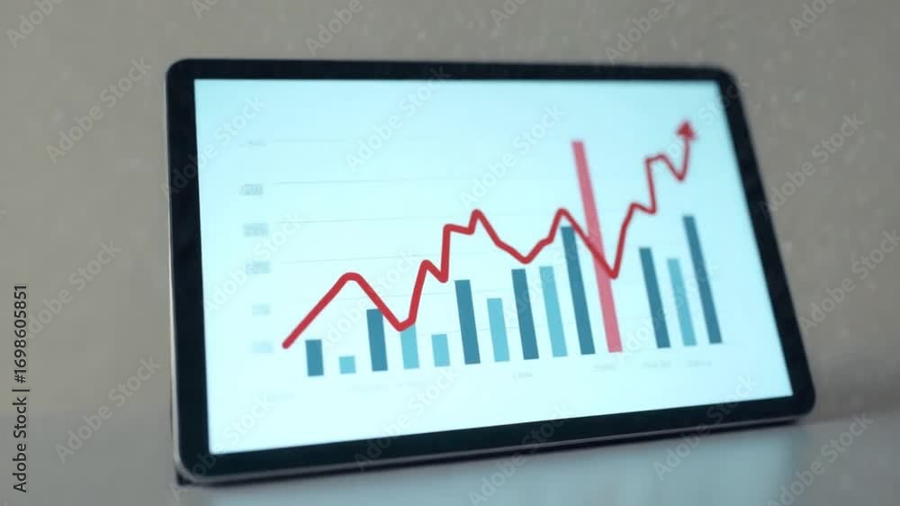 a tablet computer with a graph on it showing business sales profits charts diagrams
