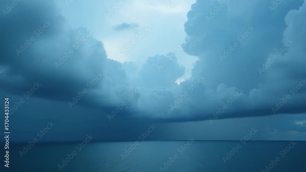 Sea before the storm. Rain clouds moving over the sea.