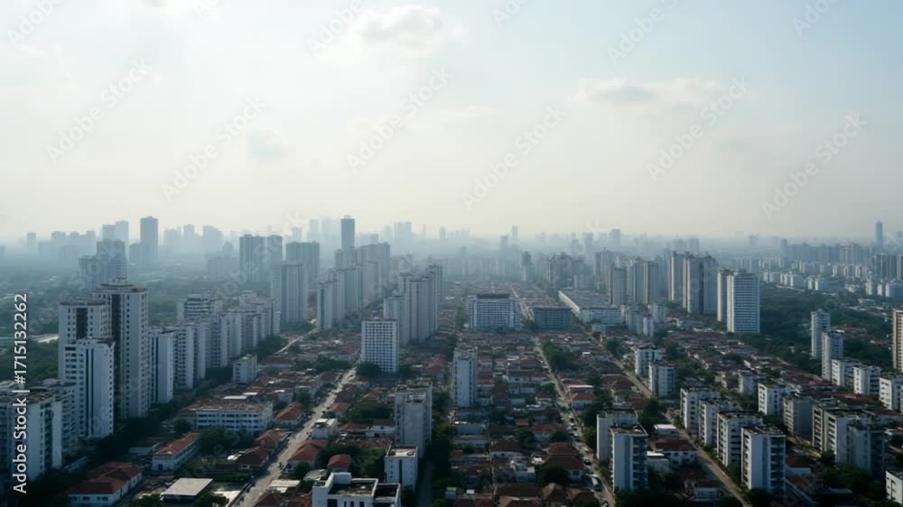 Aerial view of urban buildings and Ho Chi Minh City skyline, Vietnam.