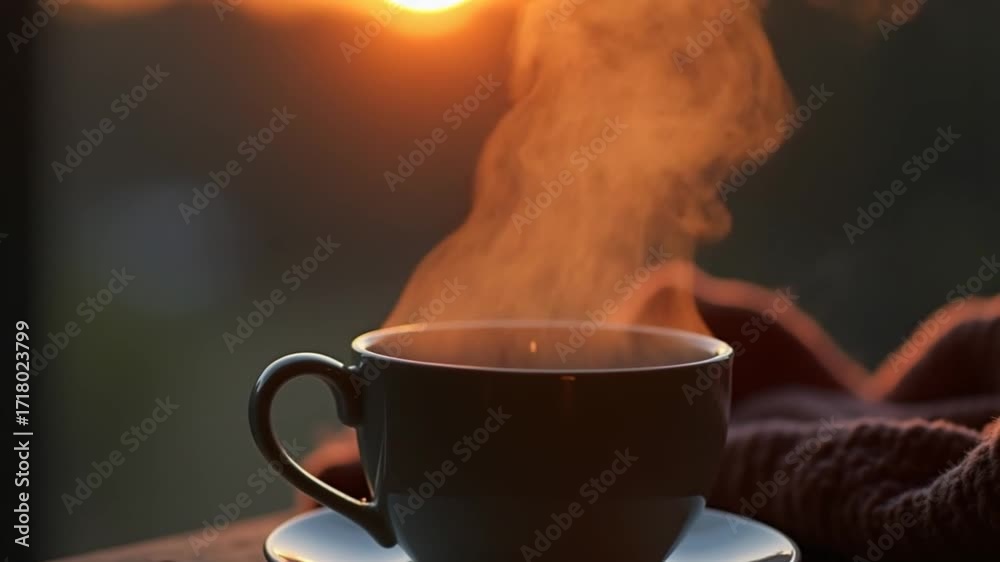 Warm beverage steaming in a cup during cool evening