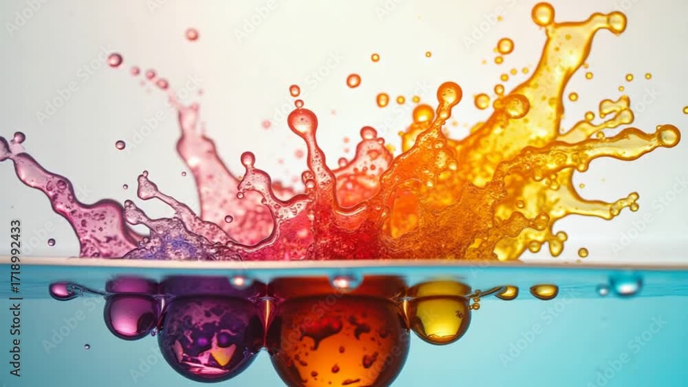 Abstract Colorful Food Oil Drops Bubbles and spheres Flowing on Water Surface