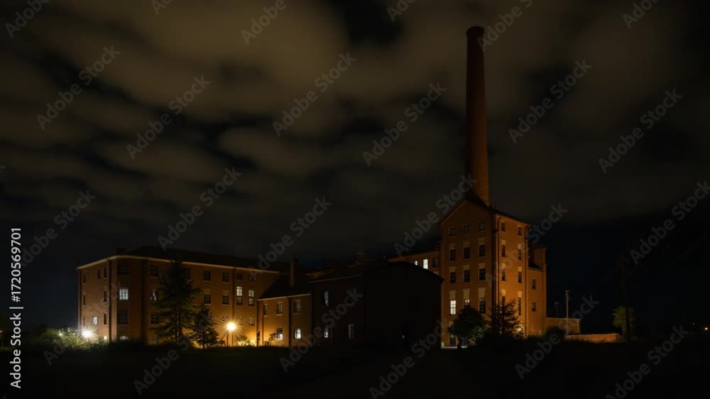 old brick factory at night
