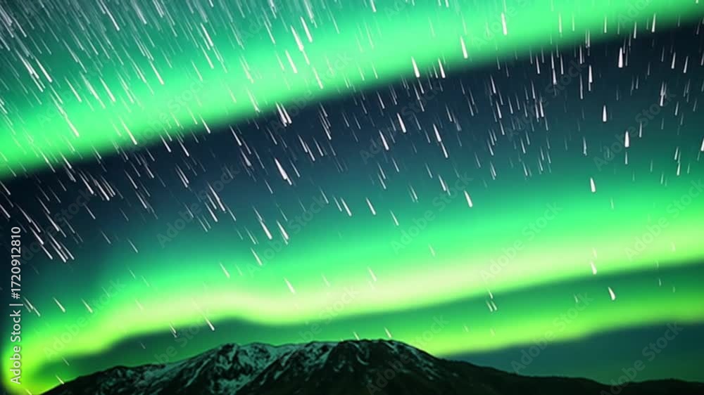 Cumulative Time Lapse of Stars and Northern Lights over a Mountain